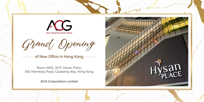為配合ACG的亞太區業務發展,有更好更新的設備及服務迎接未來的挑戰,公司將搬進銅鑼灣希慎廣場辦公室大樓。期待以全新面貌會見大家,一同開創數碼轉型新世代!